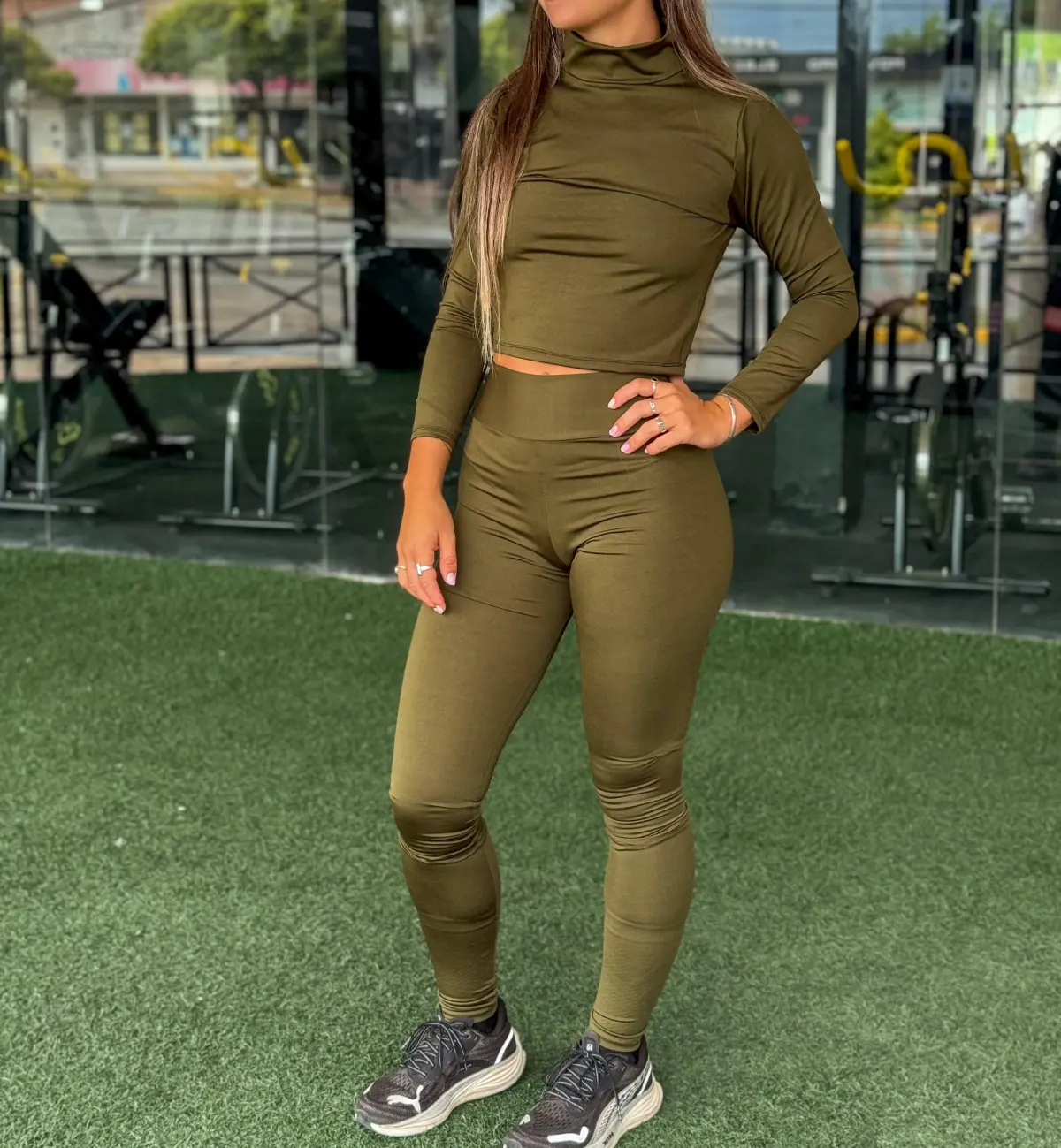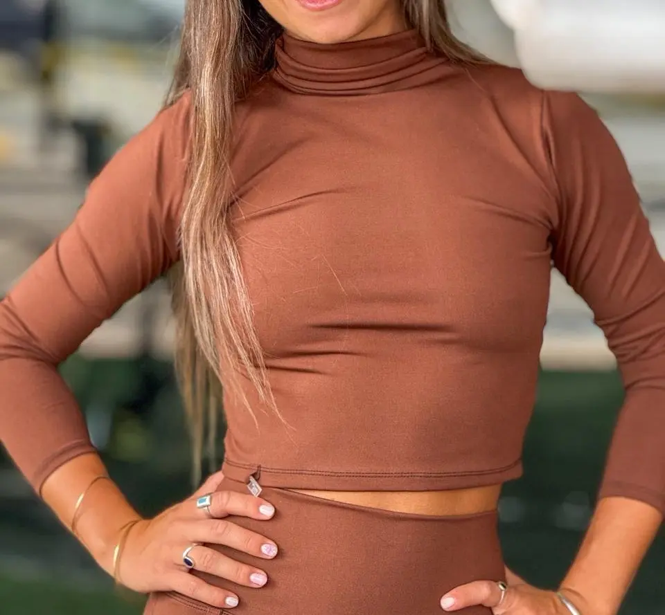 Tela Saplex elastizada • Suave, cómoda y adaptable al cuerpo • Top manga larga con cuello alto • Calza de tiro alto • Ideal para entrenamiento o uso urbano Colores disponibles Borravino – Negro – Gris plata – Verde militar – Crudo – Modelos de calza • Chupín (ajuste al cuerpo) •